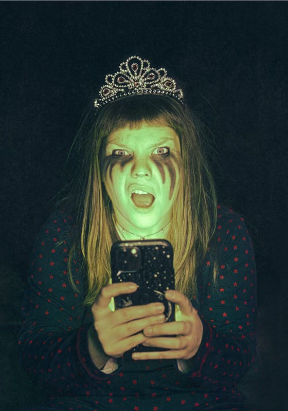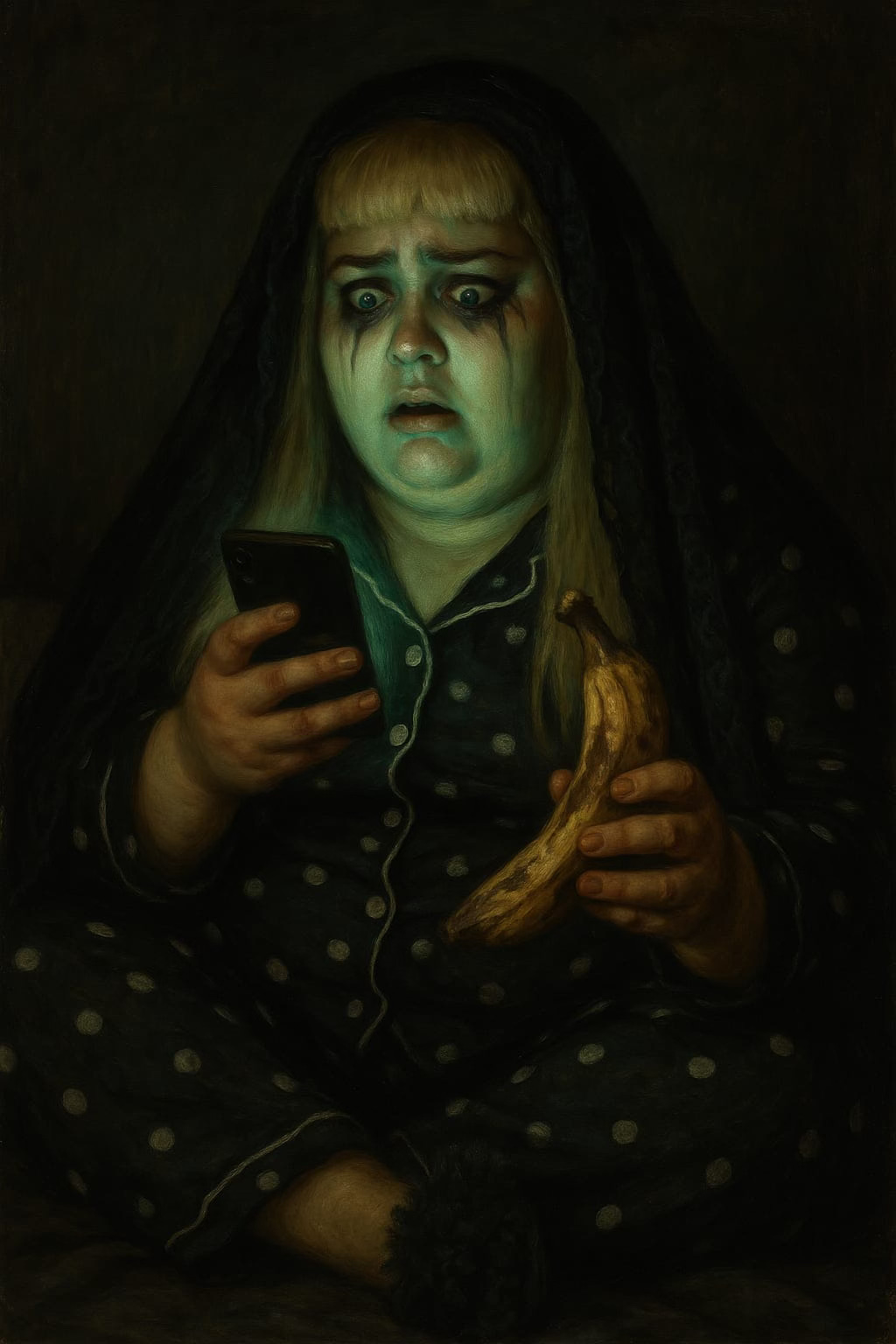 After a good half an hour of me holding a banana in one hand, the phone with a small green light in the other, and draping a nightgown over the plastic tiara on my head, we lost the banana and the nightgown. Boom boom banana.